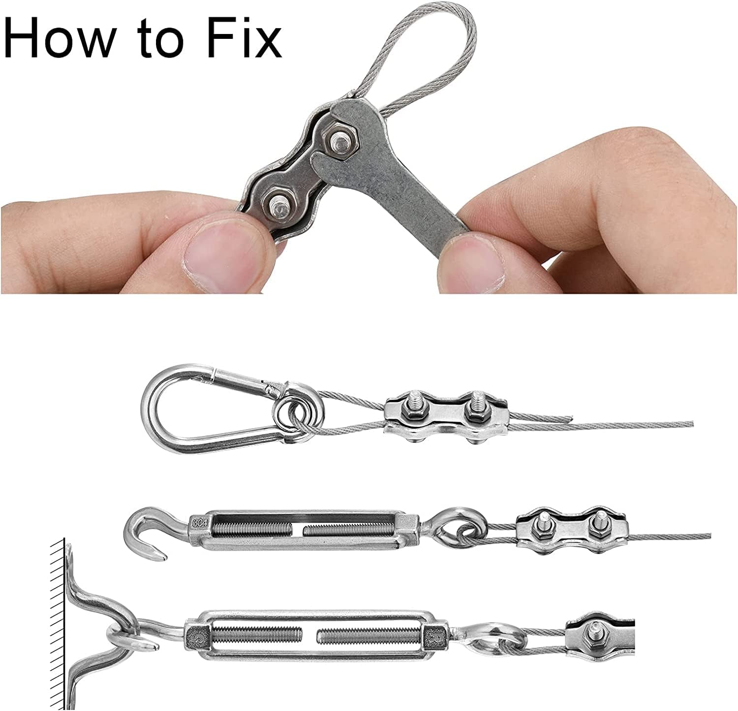 - Top Grade Quality: This patio sun shade kit is made of high-quality 304 /18-8 stainless steel which is extremely durable, sturdy, and rust-proof. With high load carrying capacity and long service life. 6 to 8.5 inch adjustable turnbuckles to create a proper amount of tension, making your shade sails more stable, effectively preventing the sun shade sail from being blow away by rapid winds in bad weather.