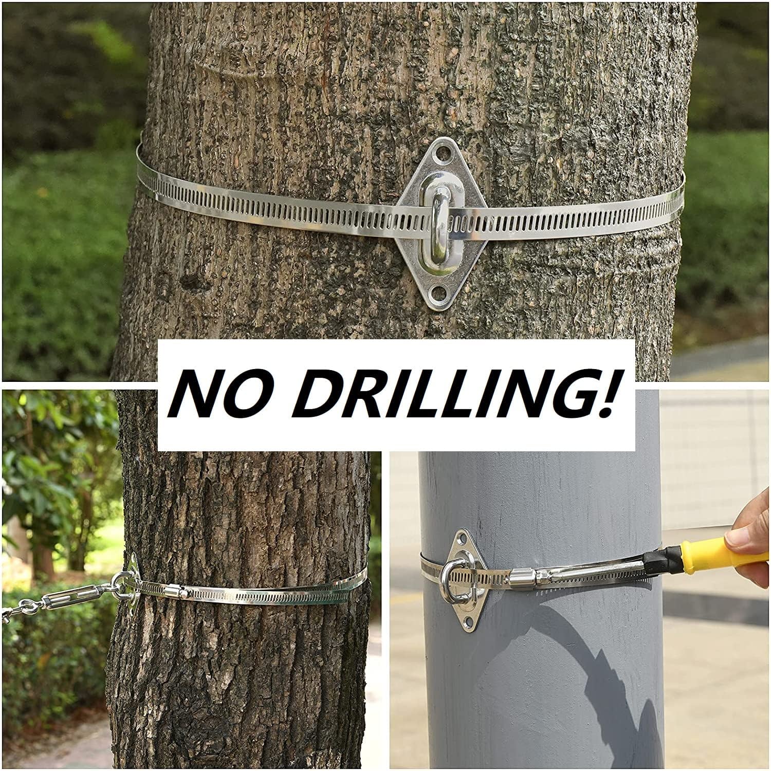 - Easy Installation: Equipped with ring fastener/clamps (to attach and protect your tree!), works with eye pads for attaching with trees/metal pillars/concrete pillars, without the need for drilling and nails on accessories to reduce installation complexity. Having our all-in-one hardware kit makes this DIY project so much easier for you.
