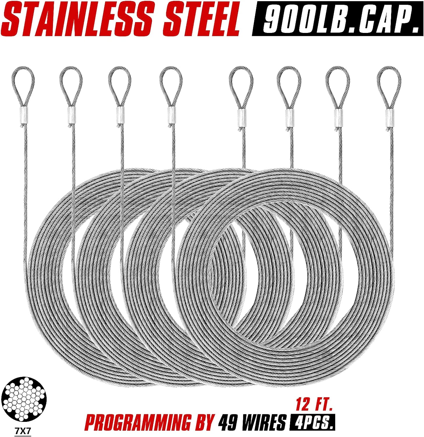 12 Feet Coated Stainless Steel Wire Rope x 4pcs